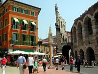 Verona is situated on both sides of the Adige river and has a picturesque Old Town withnumerous historical buildings, many of which belong to the UNESCO World Heritage and reflect the turbulent history of the city. Originally a Celtic settlement, the city became in 89 v.CH Roman colony. In 489 AD Theodoric the Great, King of the Ostgoths, conquered Verona and made it his residence. 80 years later it fell into the hands of the Langobard’s King Alboin and in the 10th c. belonged to the Duchy Carinthia (Southern Austria). Finally in the 12th c. Verona received its town charter, but fell, however, again and again under foreign rule. In 1797 the Austrians made it their strongest fortress and only in 1866 did Verona became Italian Today Verona is a province capital with approximately 250,000 inhabitants.